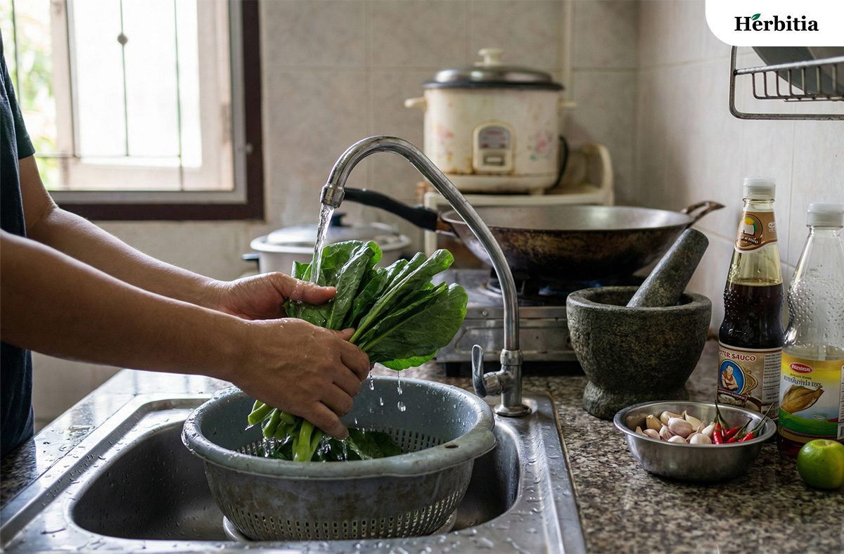 2. วิธีล้างคะน้าให้ปลอดภัย (สำคัญมาก!)